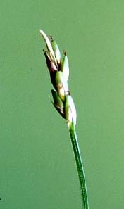 - 1. Spikes solitary, terminating the culm; perigynium often containing a vestigial rachilla as well as the achene. Group 1. subgenus Primocarex