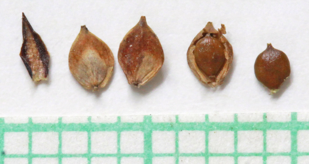 - 12' Perigynia smaller, 3.3-5.5-(6.0) mm long, variously shaped and nerved.