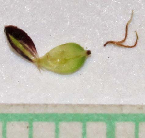 - 3. Rachilla well developed, at least half as long as the achene; leaves slender and wiry, not more that 1.5 mm wide.